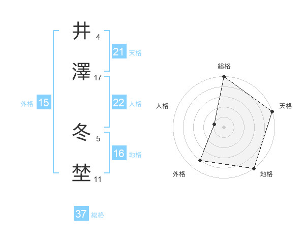 井澤 冬埜さんの総格は37画の5点!