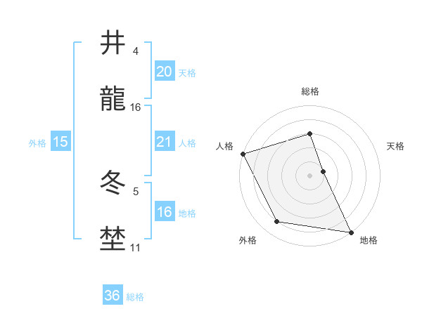 井龍 冬埜さんの天格は20画の1点!
