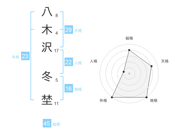 八木沢 冬埜さんの総格は45画の4点!
