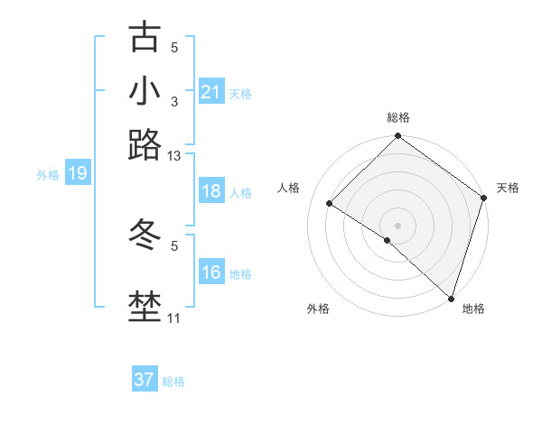 古小路 冬埜さんの天格は21画の5点!