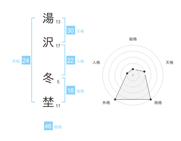湯沢 冬埜さんの外格は24画の5点!