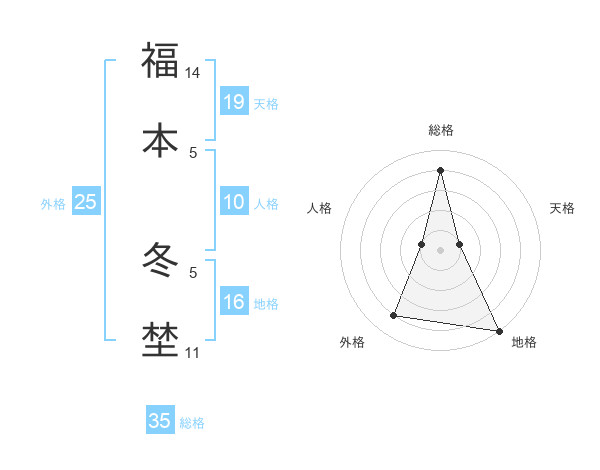 福本 冬埜さんを姓名の画数から五運を鑑定