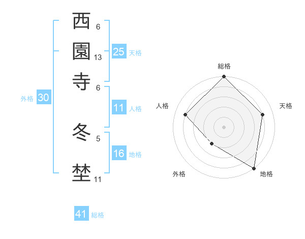 西園寺 冬埜さんを姓名の画数から五運を鑑定