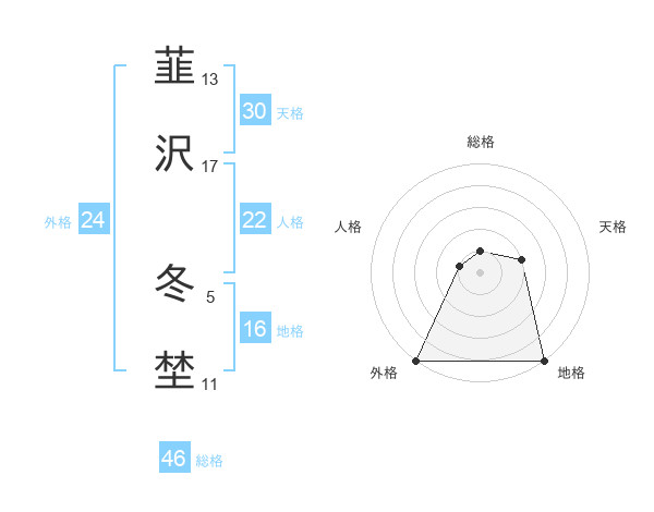 韮沢 冬埜さんの地格は16画の5点!