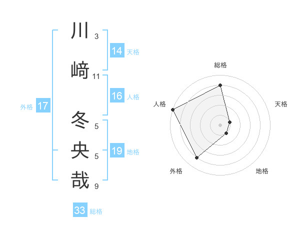 川﨑 冬央哉さんを姓名の画数から五運を鑑定