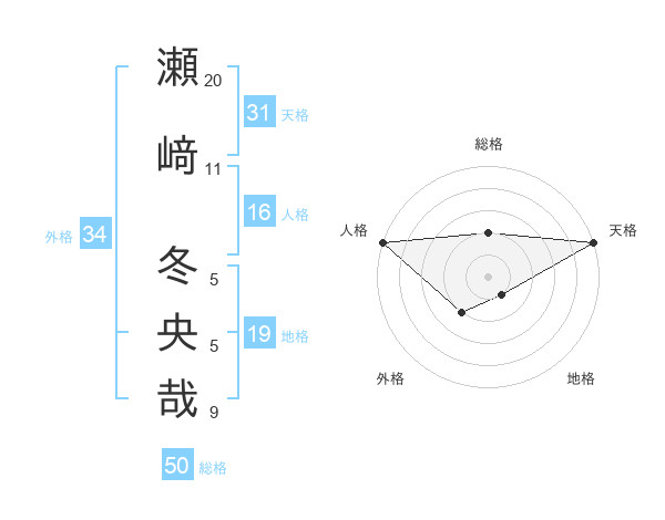 瀬﨑 冬央哉さんの総格は50画の2点!