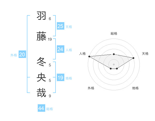 羽藤 冬央哉さんを姓名の画数から五運を鑑定