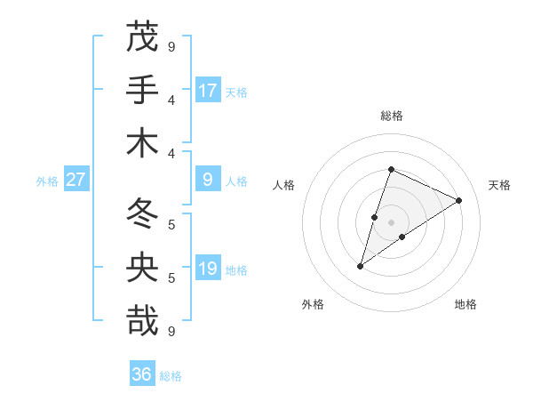 茂手木 冬央哉さんの天格は17画の4点!