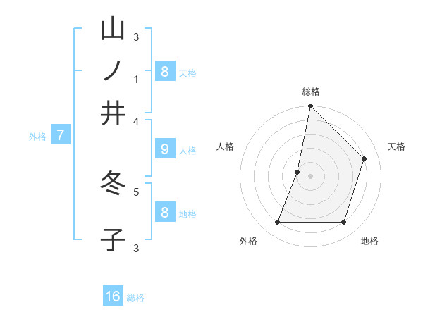 山ノ井 冬子さんを姓名の画数から五運を鑑定