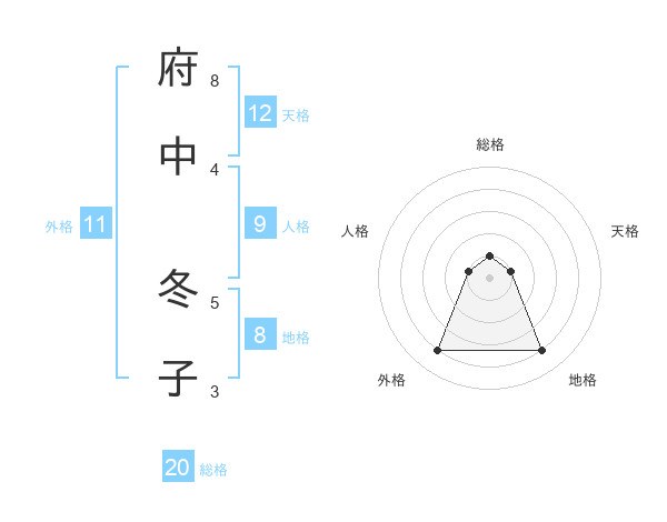 府中 冬子さんの地格は8画の4点!
