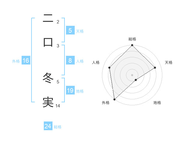 二口 冬実さんの外格は16画の5点!
