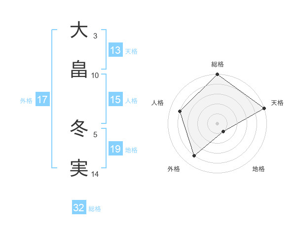 大畠 冬実さんを姓名の画数から五運を鑑定