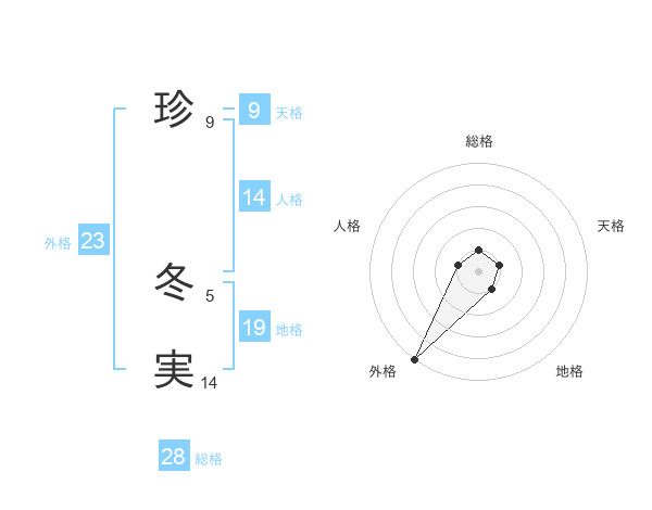珍 冬実さんの外格は23画の5点!
