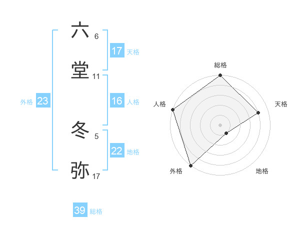 六堂 冬弥さんを姓名の画数から五運を鑑定
