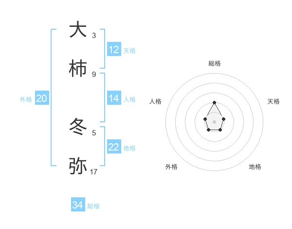 大柿 冬弥さんの総格は34画の2点!