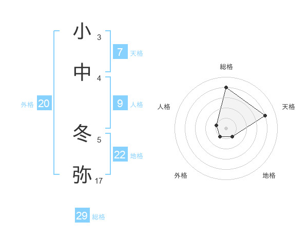 小中 冬弥さんの総格は29画の4点!