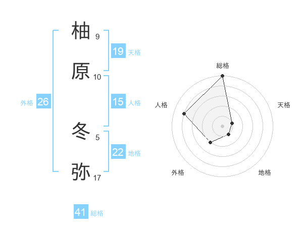 柚原 冬弥さんの総格は41画の5点!
