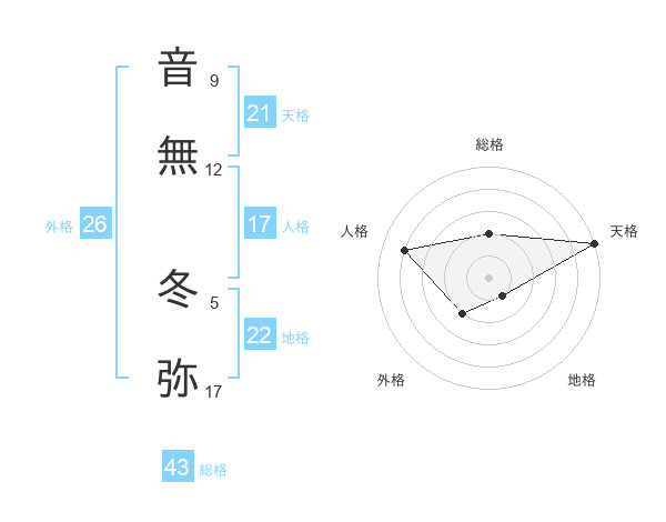 音無 冬弥さんを姓名の画数から五運を鑑定