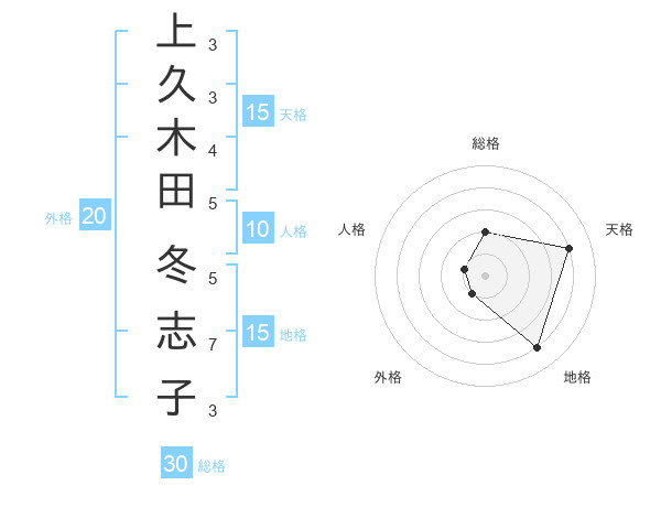 上久木田 冬志子さんを姓名の画数から五運を鑑定