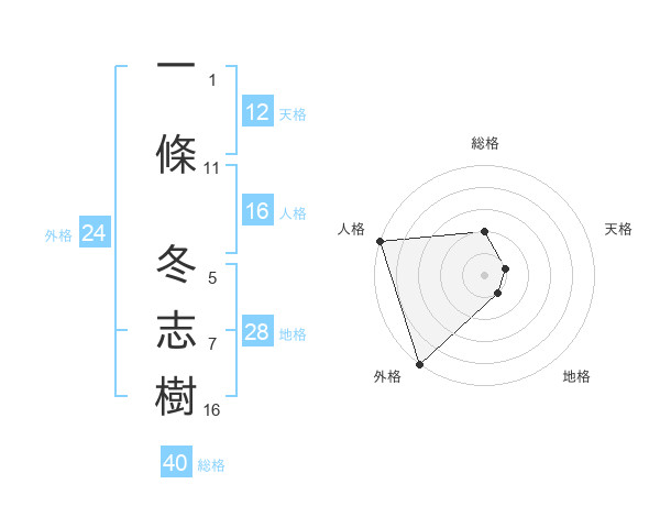 一條 冬志樹さんの外格は24画の5点!