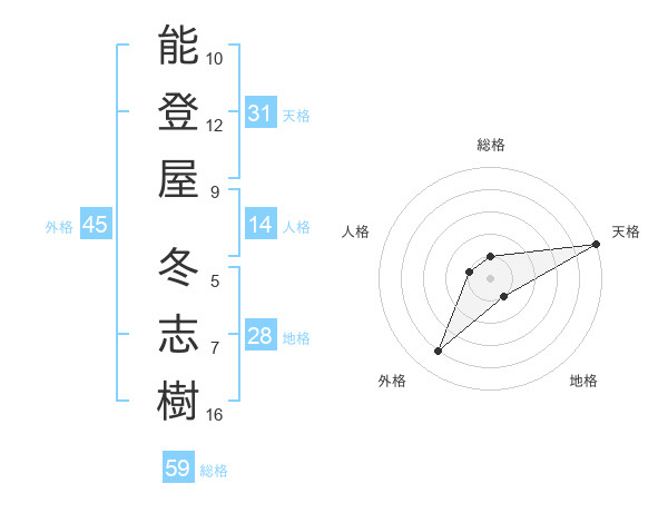 能登屋 冬志樹さんを姓名の画数から五運を鑑定