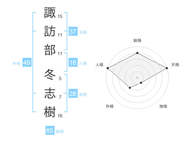 諏訪部 冬志樹さんの総格は65画の4点!