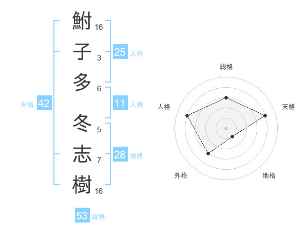 鮒子多 冬志樹さんの総格は53画の3点!