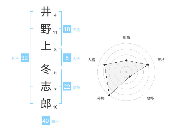 井野上 冬志郎さんを姓名の画数から五運を鑑定
