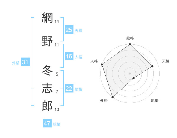 網野 冬志郎さんを姓名の画数から五運を鑑定