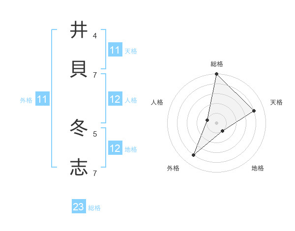 井貝 冬志さんの総格は23画の5点!