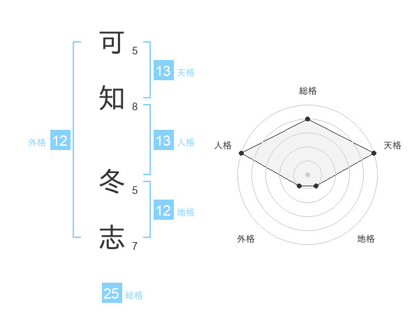 可知 冬志さんの天格は13画の5点!