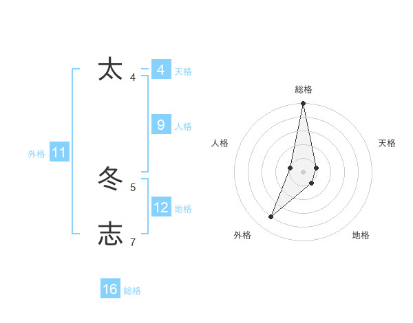 太 冬志さんの総格は16画の5点!