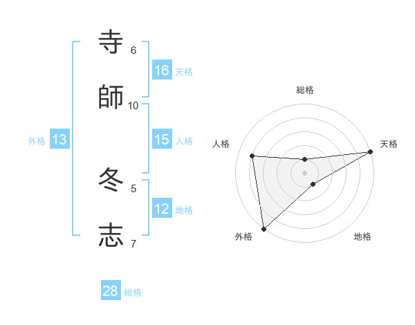 寺師 冬志さんを姓名の画数から五運を鑑定