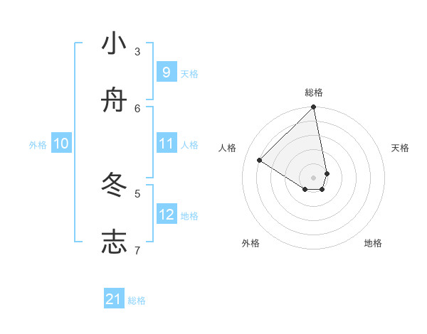 小舟 冬志さんの総格は21画の5点!