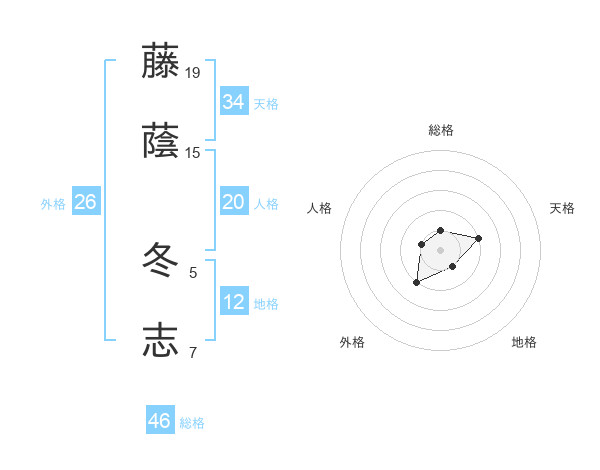 藤蔭 冬志さんの総格は46画の1点!
