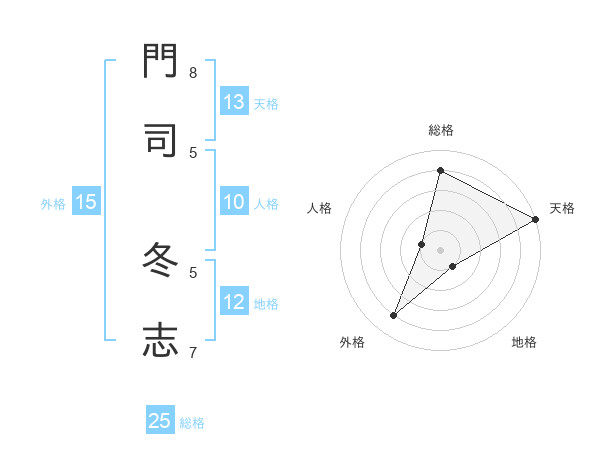 門司 冬志さんの総格は25画の4点!