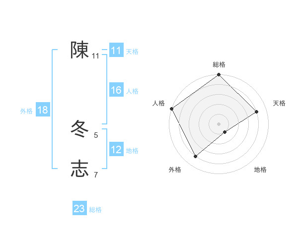 陳 冬志さんの総格は23画の5点!