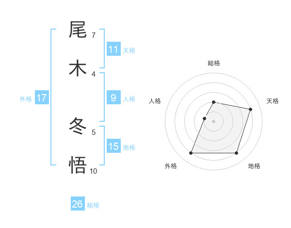 尾木 冬悟さんを姓名の画数から五運を鑑定