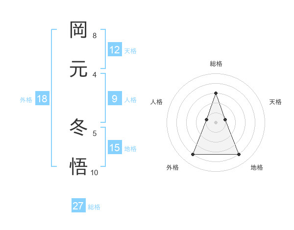 岡元 冬悟さんの総格は27画の3点!