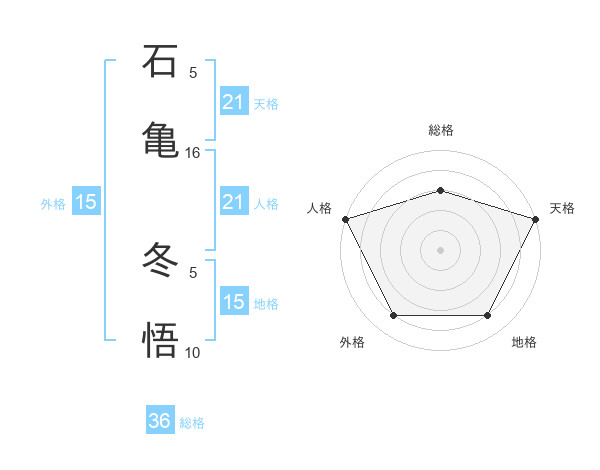 石亀 冬悟さんを姓名の画数から五運を鑑定