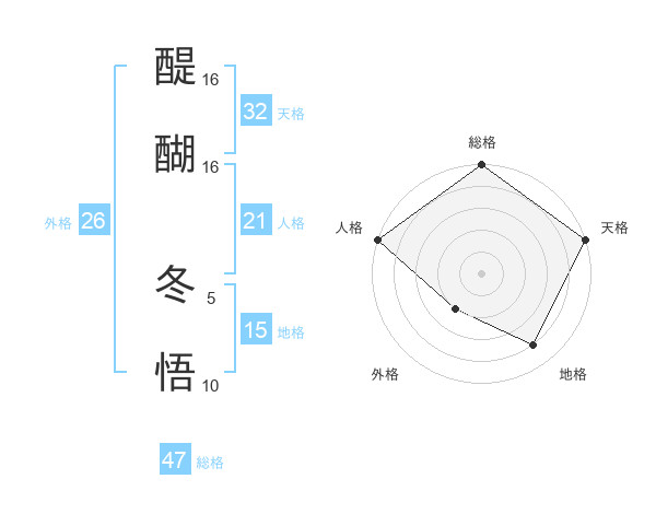 醍醐 冬悟さんの総格は47画の5点!