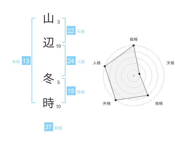 山辺 冬時さんの総格は37画の5点!
