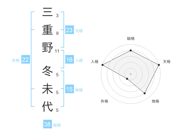 三重野 冬未代さんを姓名の画数から五運を鑑定