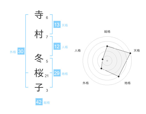 寺村 冬桜子さんを姓名の画数から五運を鑑定