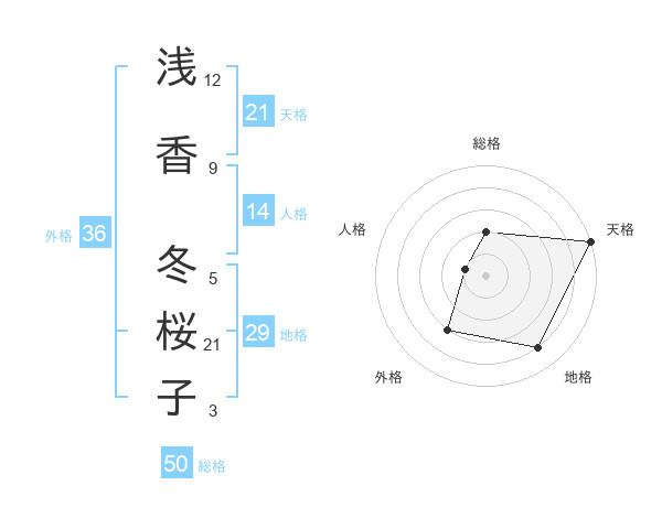 浅香 冬桜子さんの天格は21画の5点!