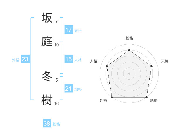 坂庭 冬樹さんの総格は38画の4点!
