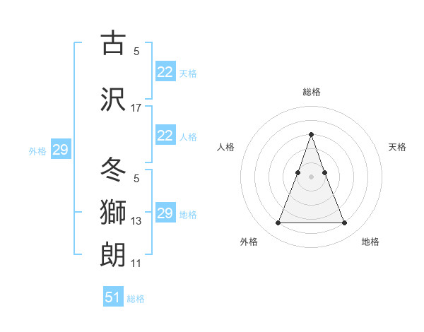 古沢 冬獅朗さんの総格は51画の3点!