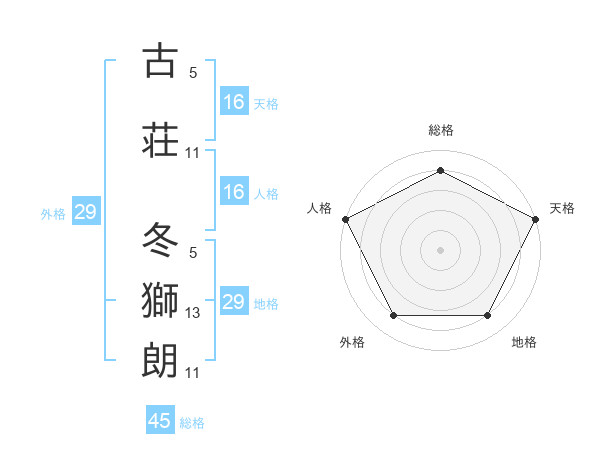 古荘 冬獅朗さんの総格は45画の4点!