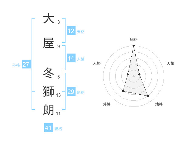 大屋 冬獅朗さんの総格は41画の5点!