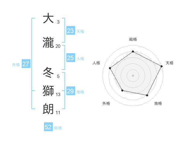 大瀧 冬獅朗さんを姓名の画数から五運を鑑定